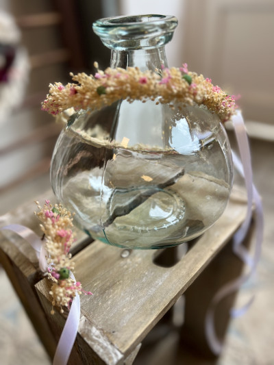 Toutes nos couronnes sont de taille ajustable, grâce à un ruban en soie.