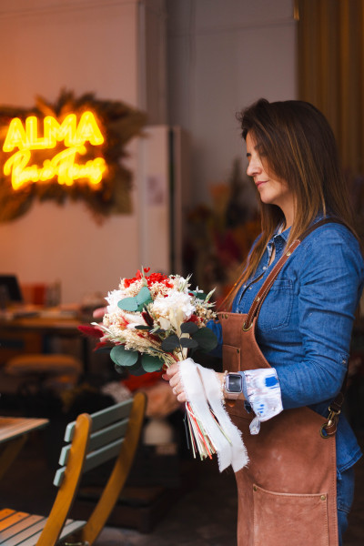 Pensé pour durer bien au-delà du grand jour, ce bouquet en fleurs séchées et stabilisées est un souvenir précieux que vous pourrez conserver pendant des années.